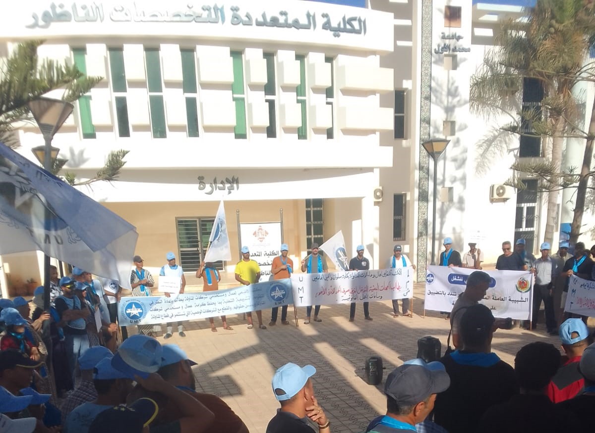 نظم المكتب النقابي لأعوان المناولة بالكلية المتعددة التخصصات سلوان المنضوي تحت لواء الاتحاد المغربي للشغل،مساء يوم الأحد 18 غشت 2024،أمام عمادة الكلية، وقفة احتجاجية تضامنية مع الكاتب العام لأعوان المناولة بذات الكلية، الذي تم توقيف… أعوان المناولة بكلية سلوان يحتجون تضامنا مع كاتبهم العام