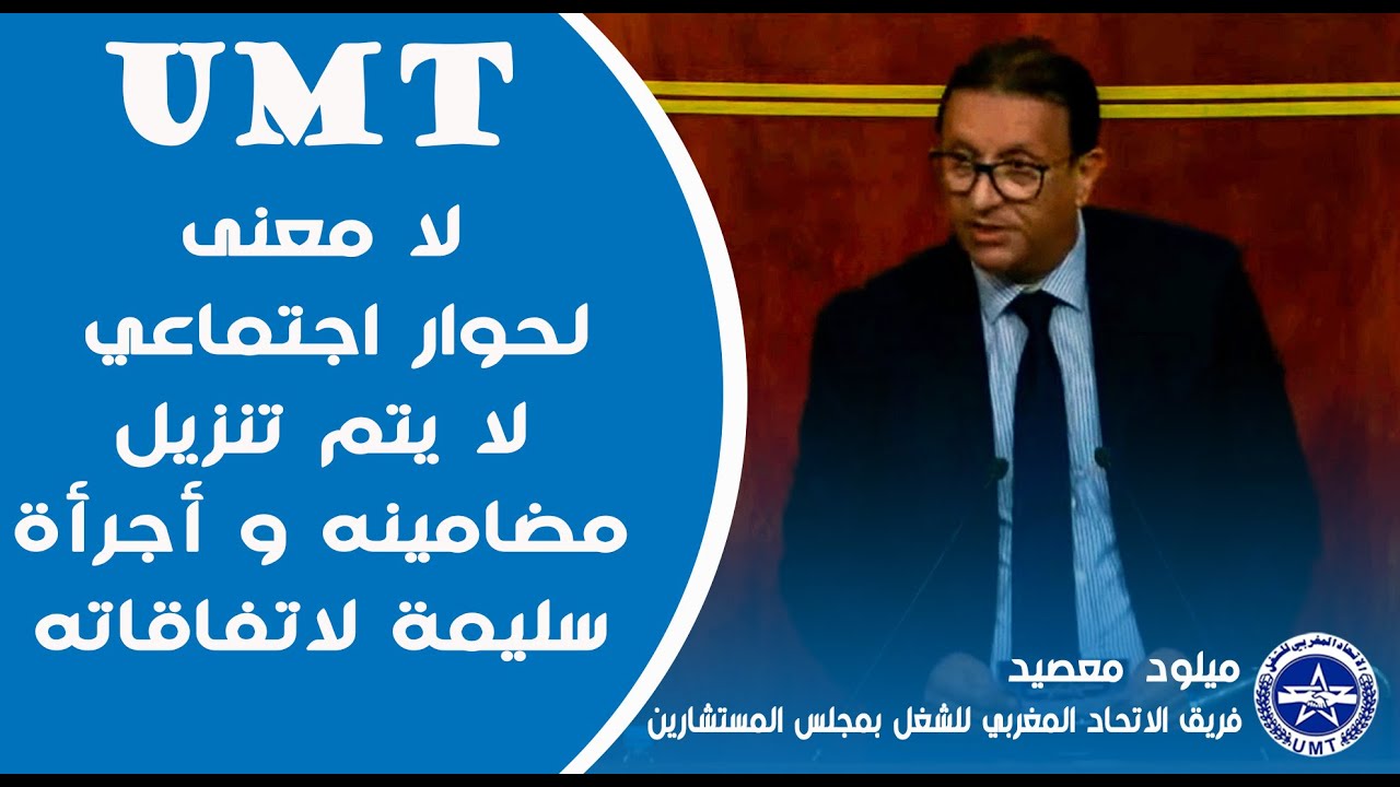 السيد رئيس الحكومة المحترم؛ السيد رئيس مجلس المستشارين المحترم؛ السيدات والسادة المستشارون المحترمون. بداية، أتوجه إليكم باسم فريق الاتحاد المغربي للشغل، المنظمة النقابية الوطنية المتجذرة، التي تدافع عن حقوق الطبقة العاملة المغربية وعموم الفئات الشعبية،… الاتحاد المغربي للشغل لرئيس الحكومة: لا معنى لحوار اجتماعي لا يتم تنزيل مضامينه وأجرأة سليمة لاتفاقاته