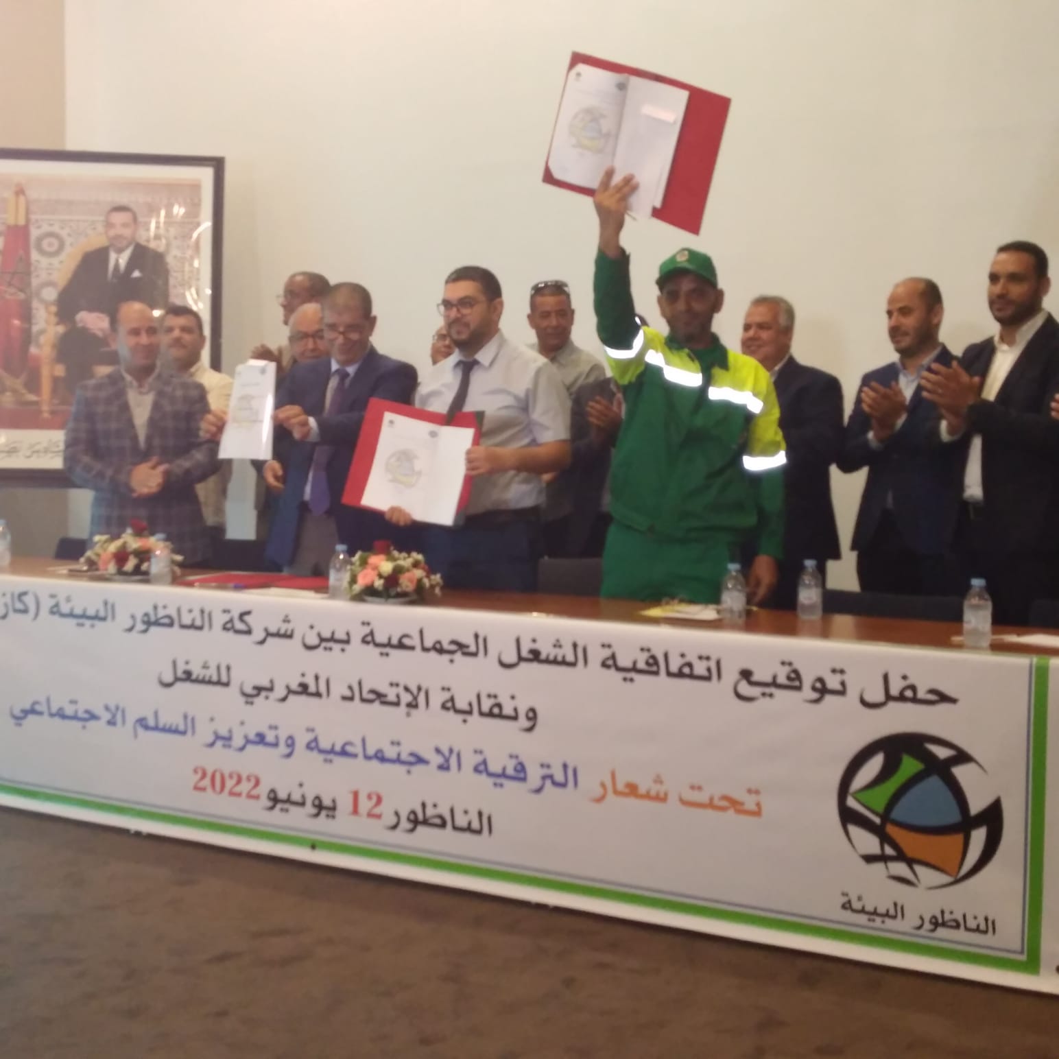 توقيع أول اتفاقية شغل جماعية من نوعها في الناظور بين شركة ” الناظور البيئة ” والاتحاد المغربي للشغل