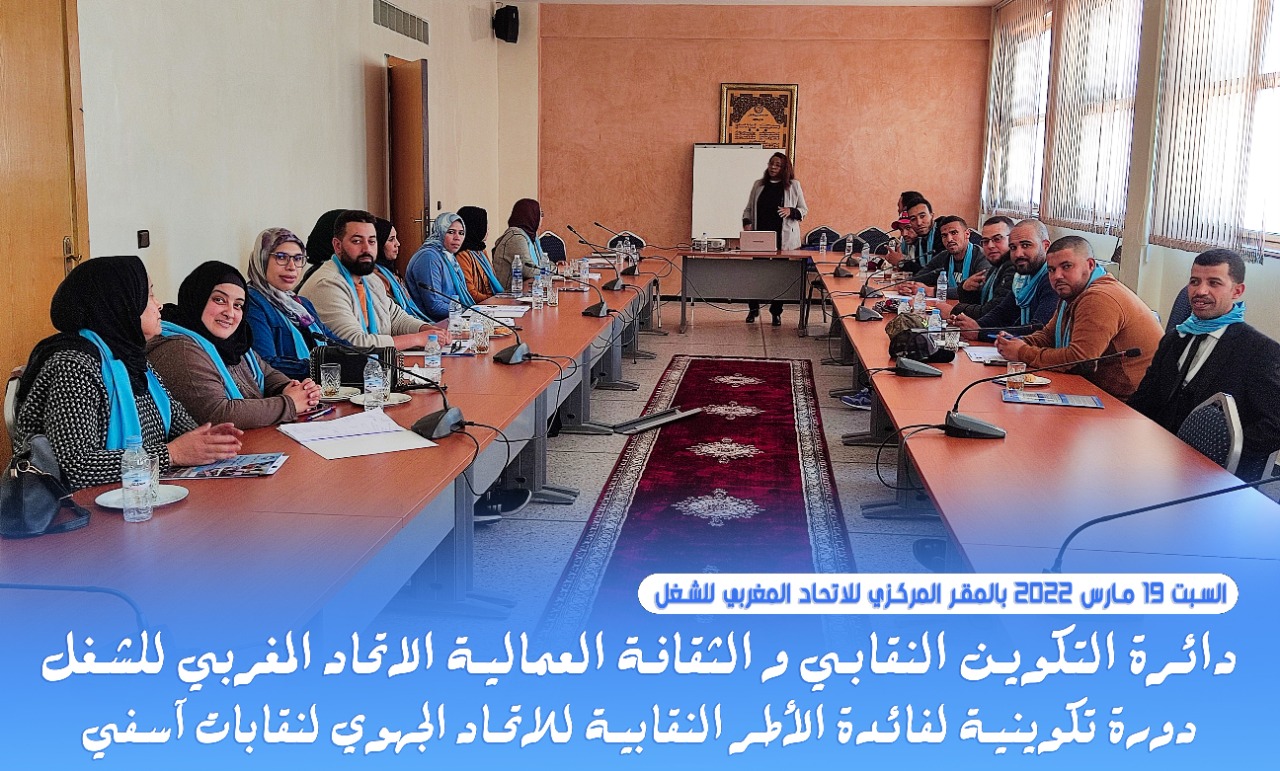 تحت شعار: “الوفاء والالتزام بالدفاع عن قضايا مستخدمات ومستخدمي مكتب التكوين المهني وإنعاش الشغل” نظمت الجامعة الوطنية للتكوين المهني بالمقر المركزي للاتحاد المغربي للشغل، يوم السبت 26 مارس 2022، لقاءا تواصليا مع ممثلي المستخدمين في… الوفاء والالتزام بالدفاع عن قضايا مستخدمات ومستخدمي مكتب التكوين المهني وإنعاش الشغل