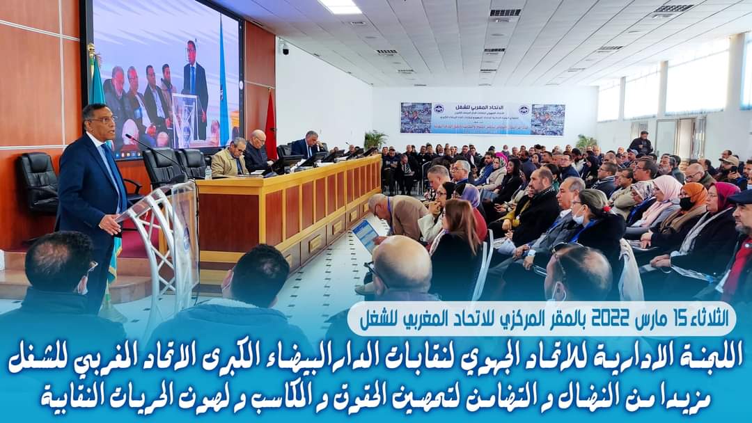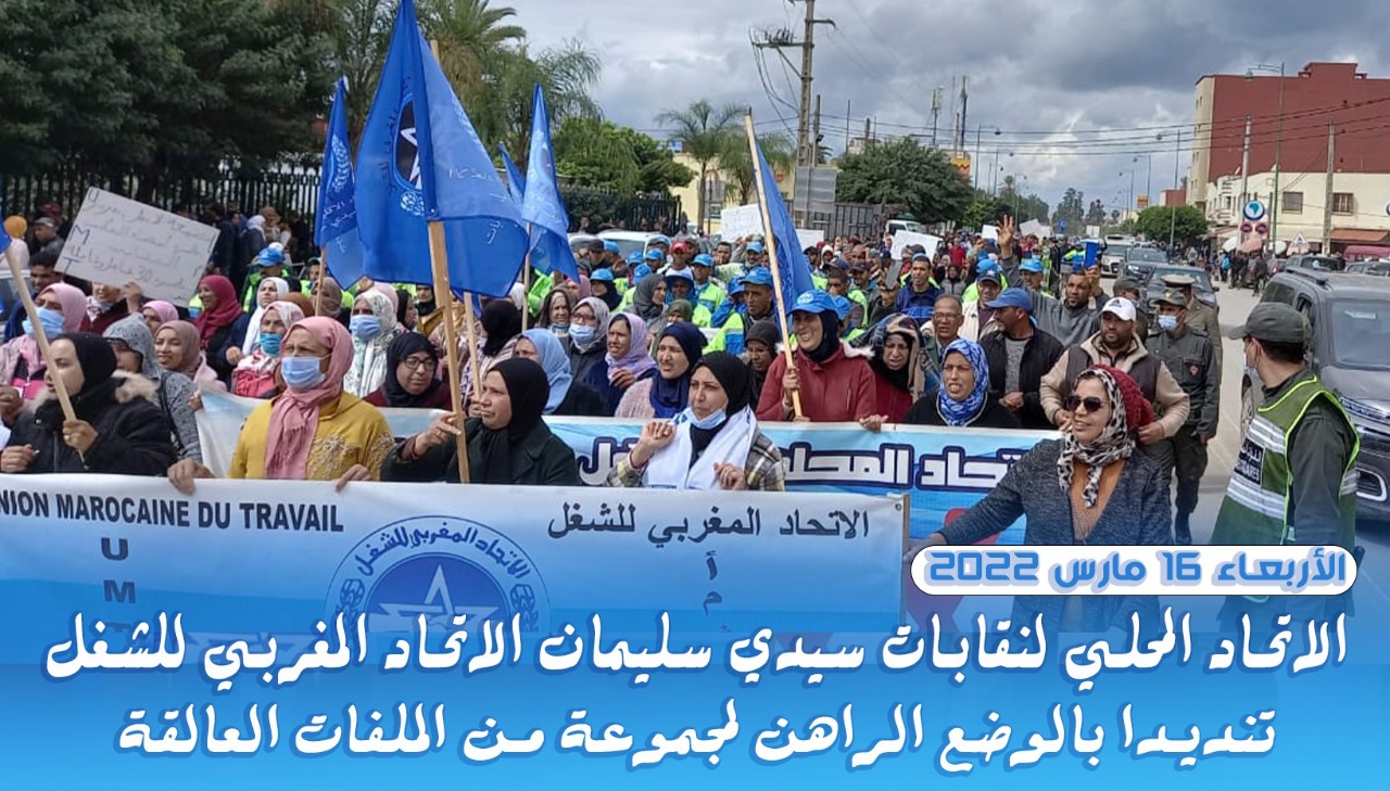 نظم الإتحاد المحلي لنقابات إقليم سيدي سليمان المنضوي تحت لواء الإتحاد المغربي للشغل ، صباح الأربعاء 16 مارس 2022 مسيرة احتجاجية حاشدة انطلقت من أمام مقر المديرية الاقليمية لوزارة التربية الوطنية والتعليم الأولي بسيدي سليمان… مسيرة احتجاجية حاشدة بسيدي سليمان تنديدا بالوضع الراهن