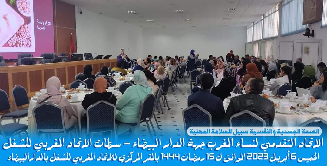 نظم الاتحاد التقدمي لنساء المغرب بجهة الدار البيضاء – سطات يومه الخميس 6 أبريل 2023 بالمقر المركزي للاتحاد المغربي للشغل بالدار البيضاء، نشاطا اشعاعيا بمناسبة شهر رمضان المبارك، تجلى في مراقبة السكري وضغط الدم لفائدة…  الاتحاد التقدمي لنساء المغرب بجهة الدار البيضاء – سطات ينظم نشاطا اشعاعيا لمراقبة السكري وضغط الدم